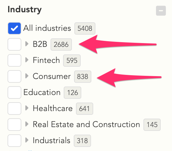 YC has funded 5,407 companies. 2,685 are B2B, only 838 are B2C. That’s a telling statistic on its own. The single biggest startup accelerator in the world has funded approximately 3x as many B2B companies as B2C.